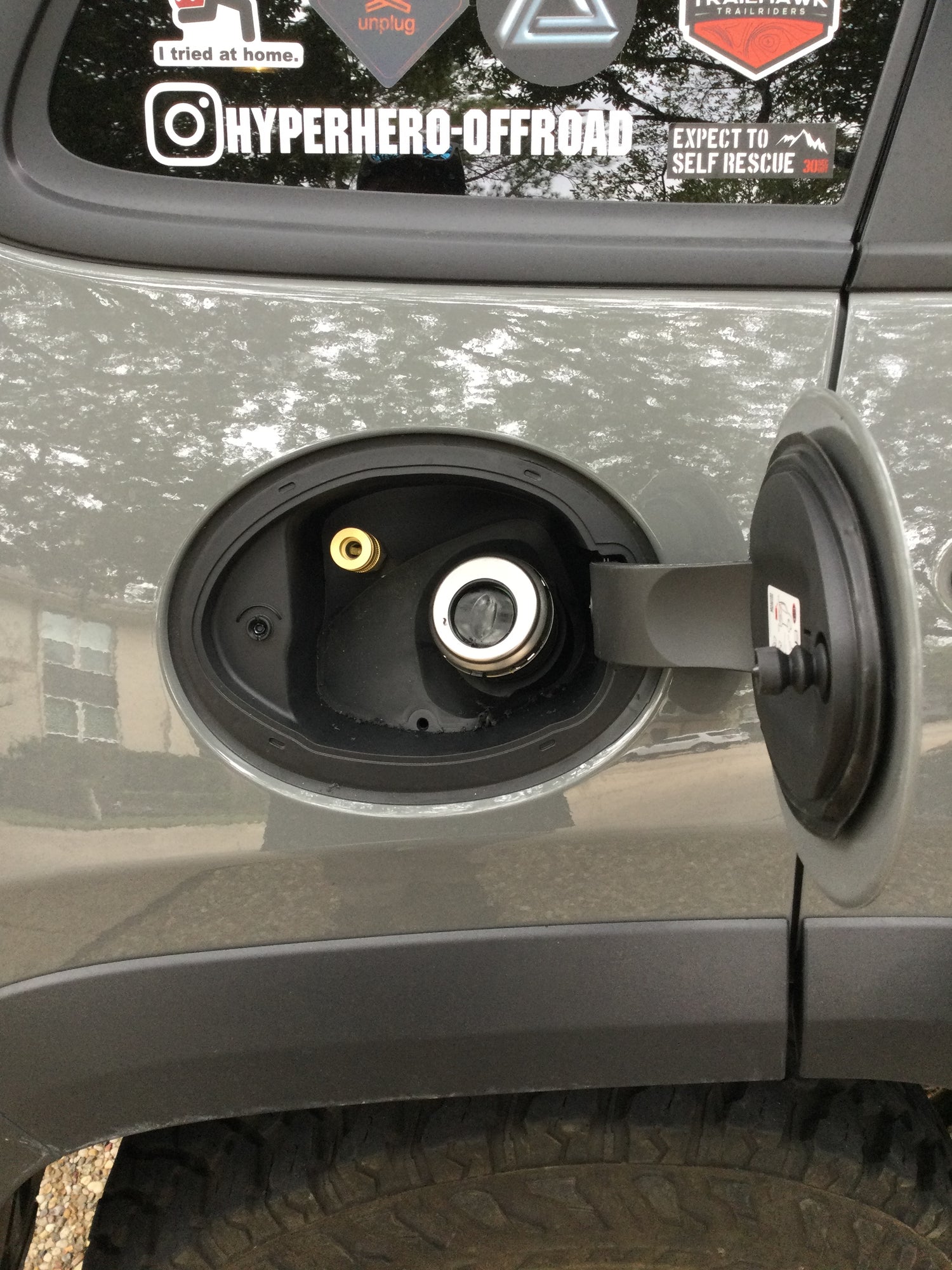 As seen on our social media accounts and created in-house, this kit includes everything you need to install a quick connect coupler inside your gas door and run the pneumatic air hose back to your cargo area mounted air compressor (such as ARB). We use high quality pneumatic fittings and kink resistant hose in our kits, and the systems are pressure rated to 110psi.