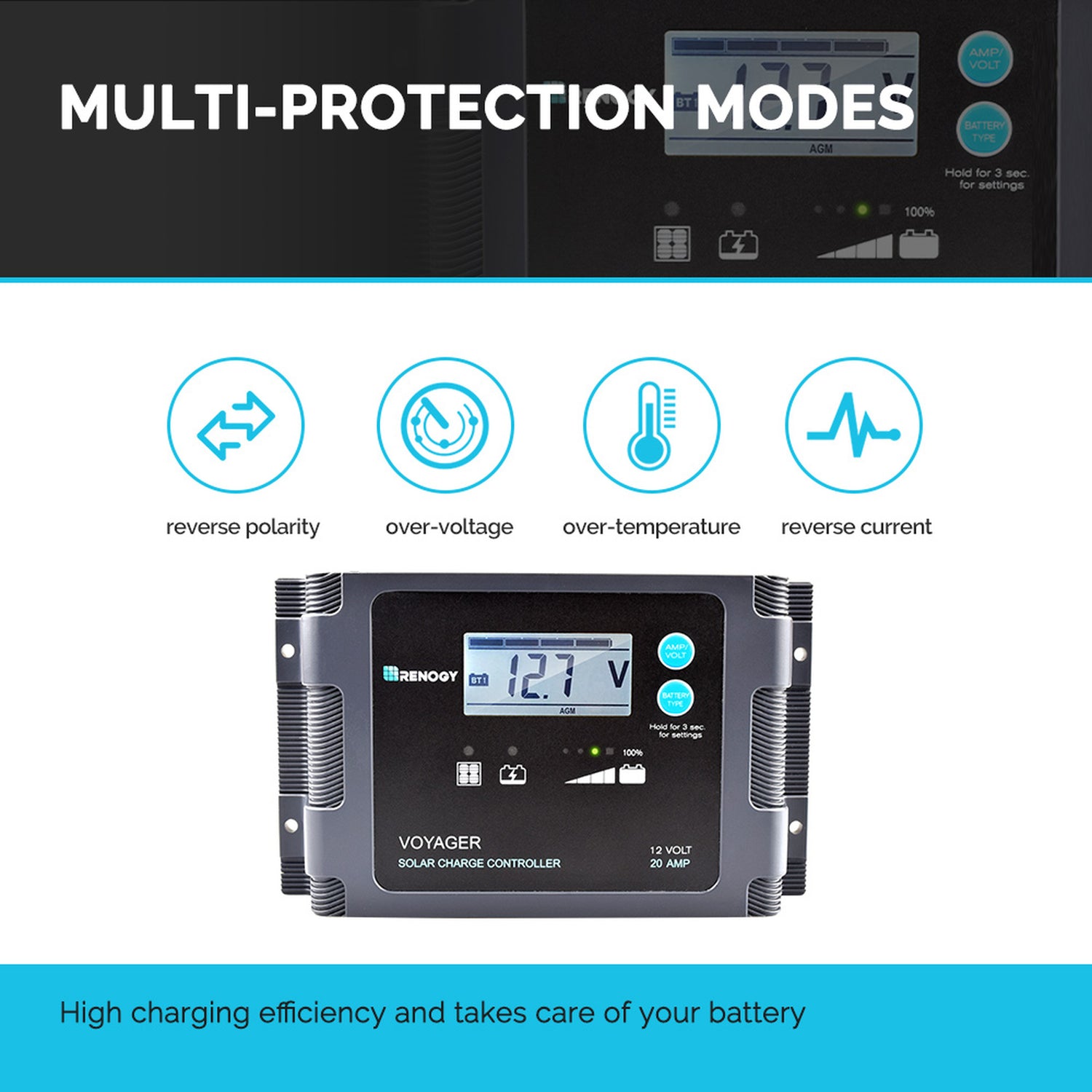 | 200 WATT MONOCRYSTALLINE FOLDABLE SOLAR SUITCASE | RENOGY 20A VOYAGER CHARGE CONTROLLER |