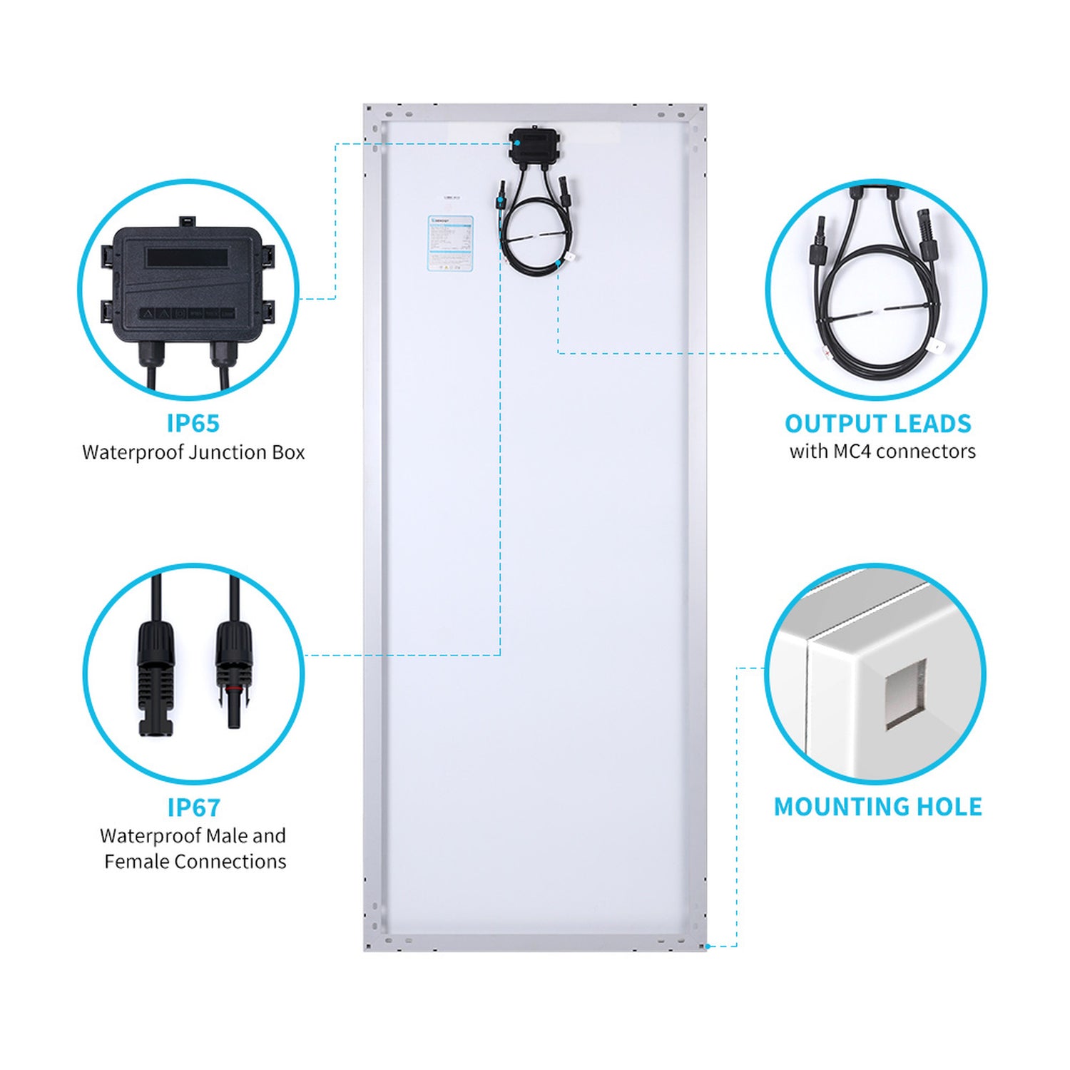 - Pre-drilled holes included for grounding Compatible with different Renogy mounting systems such as Z-Brackets, Pole Mounts, and Tilt Mounts