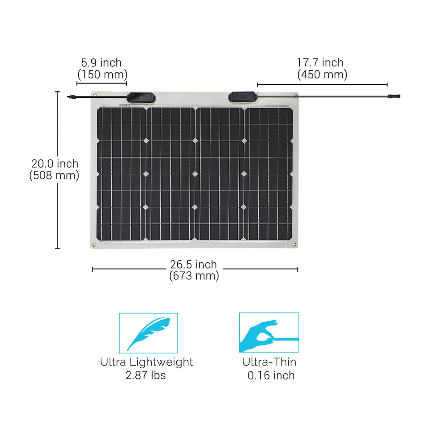 - Thanks to advanced polymer materials, this product weighs 70% less than conventional solar panels, making transportation and installation a breeze