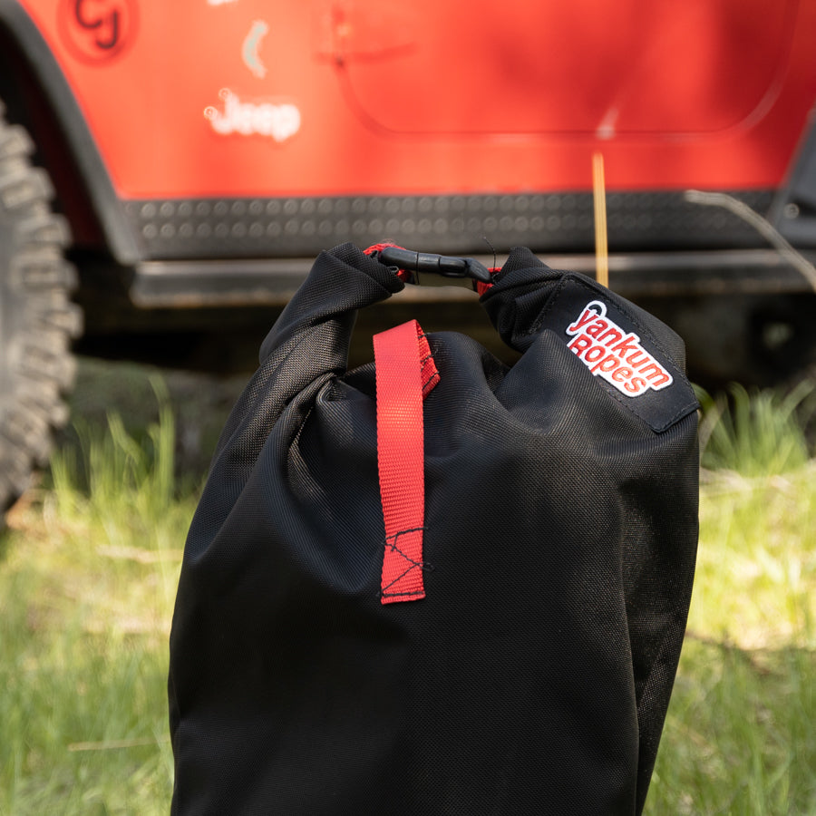We extended the length of our bags, squared out the bottom for things to sit a little prettier. With the extended length of the bag, you can now roll it down to the desired length, bring the clasps together and badda boom! Your gear is protected from the outside elements and is ready to be stored snuggly in your rig. Or maybe your gear just got pulled out of the mud and now the bag is protecting your truck from your gear. The possibilities are almost endless.